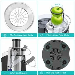 - γShorten Pre-Time with Extra Wide ChuteγThe key to maintaining the taste of fresh juices is not to cut fruits and vegetables more than once. This ultra juicer is designed with 3-inch wide chute, you can juice a whole big apple or big tie celery without cutting and shorten your pre time.No pre-cutting is required, more convenient to use. Because of the efficient motor, you don’t worry about clogging.
