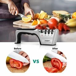- ?Ergonomically design: Non-slip rubber base and ergonomic handle bring good cooking experience. It is perfect suitable for both right-handed and left-handed users. You can use it with both right hand and left hand. The bottom of the knife sharpener has non-slip rubber bases that prevent slipping during use.