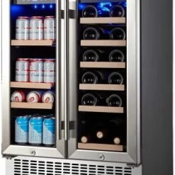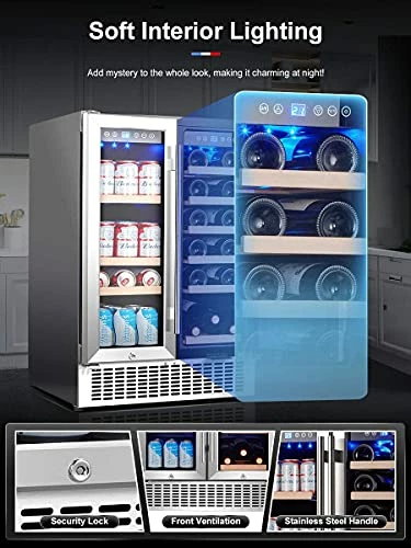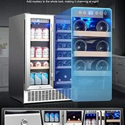 - Special Feature: Dual temperature control?Noiseless and vibration-free?keep consistent temperature?Front ventilation?Blue LED lighting?security lock on both door?stainless steel glass door?free-standing or built-in use?removable shelves?user-friendly control panel? See more