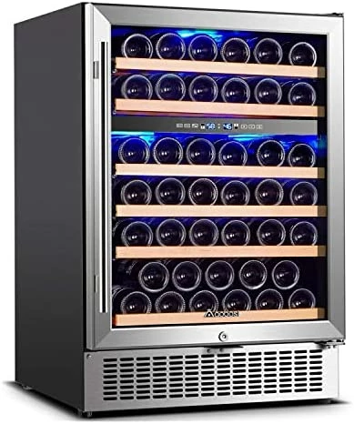 Very pleased with this new wine fridge, we have had it installed for about a week, detections were sufficient, packaging protected it very well, setup was so easy, The blue light is mesmerizing! It’s pretty nice looking on my kitchen area, completely perfectly, all stainless steel color. The digital temperature display so helpful, both side can set different temperature, witch is awesome design, and the sound super quiet, that is what’s surprise to us. We will enjoy to have this.