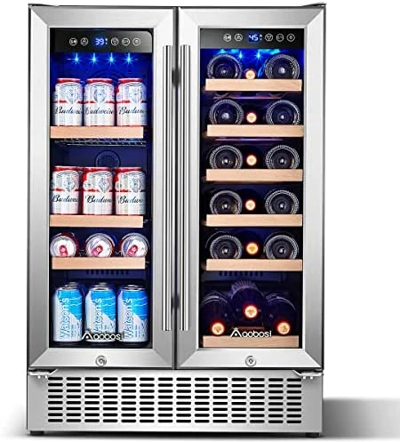 - ?2-IN-1 Wine and Beverage Cooler–The dual zone design can hold up 19 standard Bordeaux bottles (width: 2.75 inch, height: 11.8 inch) and 57 pops cans. This beverage cooler is perfect for you to store Wine,Soda,Beer,Water, together.Safety lock is available.wine cooler refrigerator is a perfect companion for wine enthusiast to store specific or various wine.