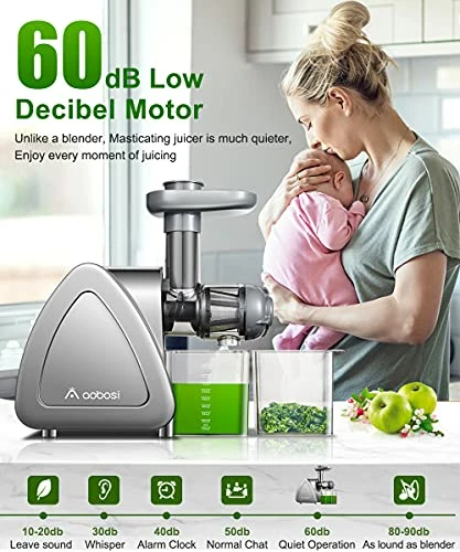 - β?γSafe & Quiet Operationγ: Our cold press juicer equipped with intelligent protection chips, making it stop automatically for every 20 minutes’ operation. 150W motor- less than 60 decibels, small mouth design to put ingredients that prevent your hands getting injured and ensure the ingredients are stoned and peeled for healthier juice. Just enjoying a quiet and safe environment and healthy life when making juice.