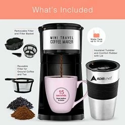- COMES COMPLETE WITH EVERYTHING YOU NEED. The personal coffee maker comes complete with a travel mug, lid, internal filter and holding basket. All you need to do is set it up, plug it in and begin brewing your personal cup of coffee any time you want. All the components are dishwasher safe for added convenience, making clean up as easy as setting up. **Prop 65 Warning – Lead and DEHP**