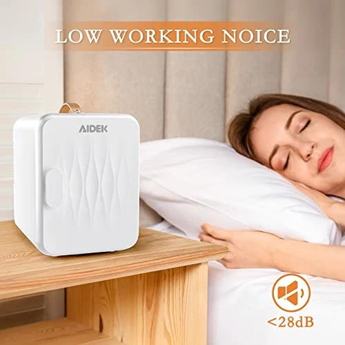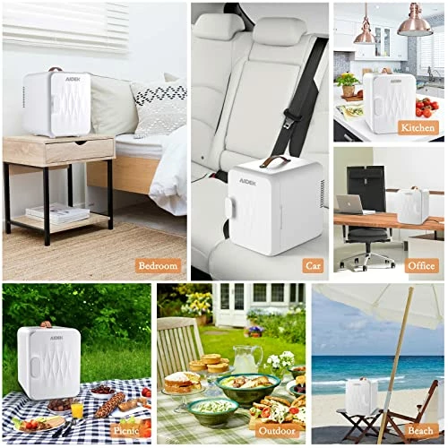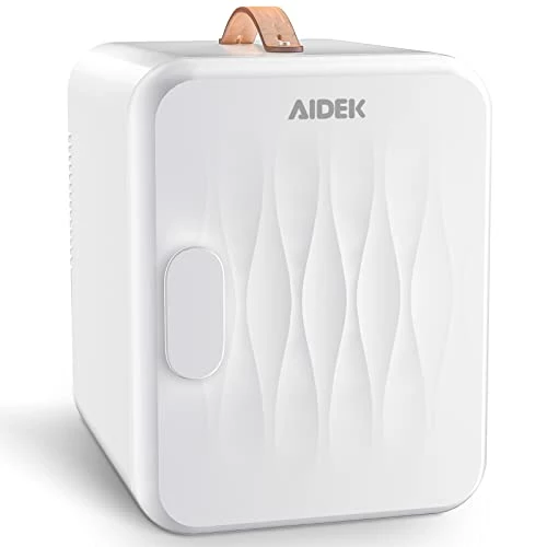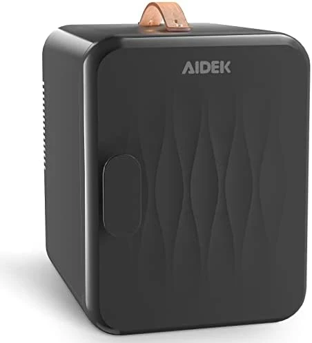 - PORTABLE & FASHIONABLE – The AIDEK mini fridge comes with a sleek PU handle, portable and durable. 4L capacity easily stores 6 cans or 35PCS of facial mask. The inner dimensions 5.8″W x 5.1″D x 8″H.