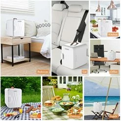 - HOME & CAR USE – This mini cooler supports DC12V or AC120V power (both power cords included). Great for living room, driving, office, dorm, road trip, boating, camping, and more!