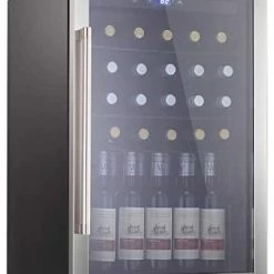 I purchased this beverage cooler to use for wine storage. I liked other more expensive units better for their dual zone features. However, the depth of this unit is what worked for implenting into a freestanding bar at the end of my dining room where I am limited to 18″ in depth. Being able to reverse the door swing was also a plus. If you plan to reverse the door swing I recommend taking a picture of how the screws are set from the manufacturer. There are no instructions for doing this and nothing online. You’ll end up with an extra screw and wonder where it goes. After reverseing the door swing, the gasket on the door (dry) rubbed against the cooler frame. Since reversing the door swing required tipping the unit, I followed directions and waited 24 hours before powering up. It took aother 48 hours or so for the door gasket to settle in to it’s new position and the rubbing sound stopped. There are two adjustable legs in the front. For design purposes one is shorter than the other, but much shorter that it should be. Which means, there’s hardly any adjustability before the leg comes out completely. If you have wood floors, DO NOT SLIDE THE UNIT!!! The back of the unit has an open rail with a rough edge that sits a microscopic distance off of the floor. This rail has the potential to not only scratch your floor but possibly cut your skin if you touch it just right. The back supports (legs) are molded steel so your only adjustment is in the front. I attached felt furniture pads to the front legs, the back molded supports and the steel rail. Only then did I slide the unit into position, and was still sure not to come close to tilting it. The manufacturer should have spent another 25-50cents, to add a longer thread to the shorter front leg and had an employee take a rasp to the steel rail. It’s only been a week since I’ve had the unit and so far so good. Still playing with the temperature setting for properly chilling red wine. Even with all of the set-up discoveries and nuisances I would recommend this unit if it meets your criteria.