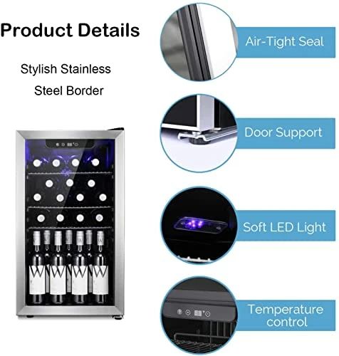 - ESSECTIVE BEVERAGE COOLER-This beverage refrigerator runs on a powerful but quiet compressor. Soft LED light making it easier to find a drink.The shelf is removable and can control the interior space.