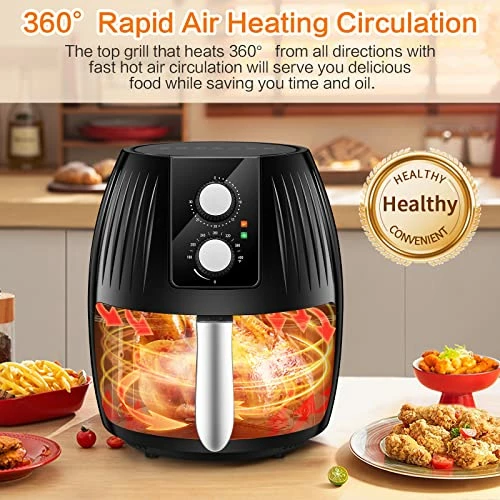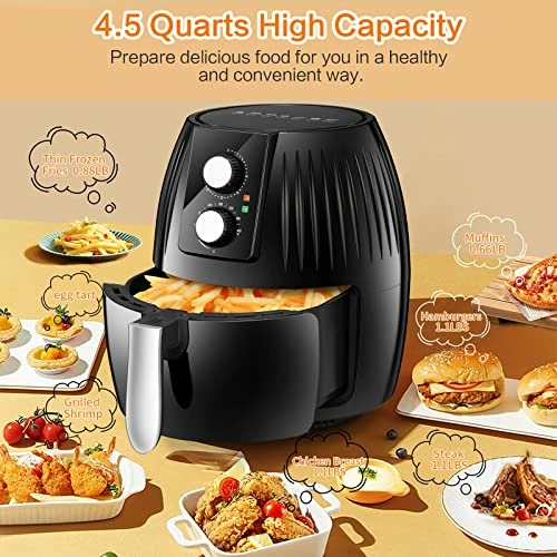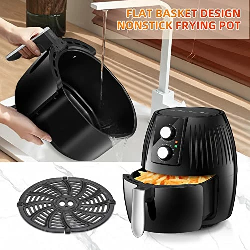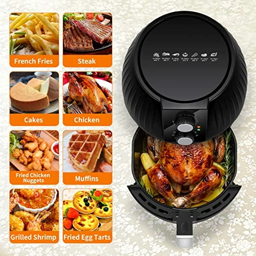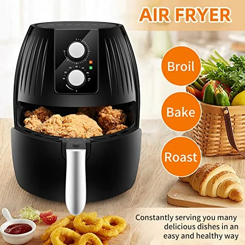 - 【Fashionable Knob Design】Air Fryers have two knobs, one for controlling the time and one for controlling the temperature. You can choose the time and temperature you want while cooking, and then make delicious food. The device comes with a built-in timer. It will automatically turn off the device count down to zero. You can manually turn off the device by turning the timer knob counterclockwise to zero.