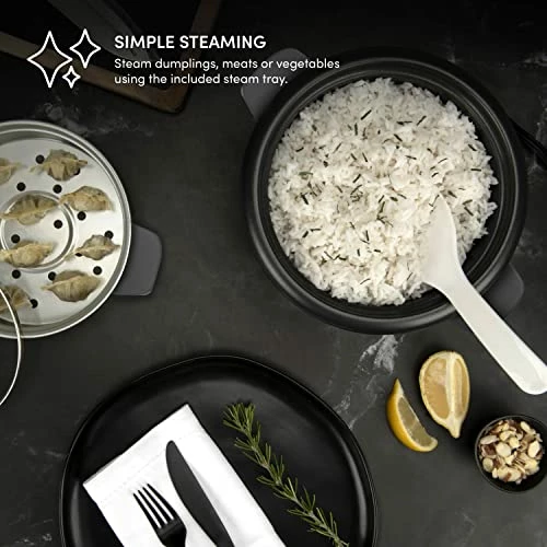 - Simultaneous Steaming โ With the included steam tray, steam foods above while rice, soup, or any other meal simultaneously cooks below, allowing you to save time without sacrificing quality.