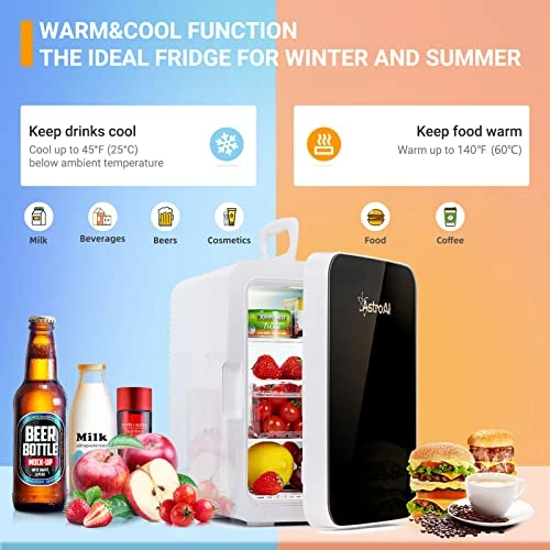 - βAdvanced ECO and Noise Reduction Technology: Our unique semiconductor is energy-efficient, ultra-quiet, and environmentally friendly. It can cool up to 36Β°F (20Β°C) below ambient temperature, warm up to 140β (60β). With the AstroAI 10-liter mini fridge, you can enjoy cool soda in the summer and hot coffee in the winter!