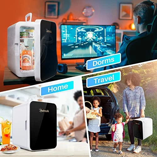 - βConvenient & Lightweight: The AstroAI 10-liter thermoelectric cooling/warming mini fridge is chic and effortlessly portable, including a small handle that allows you to lift and move it with ease. This unitβs measurements are 9.8β W x 12.8β D x 13.9β H.