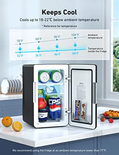- Warming and cooling functions: Cools up to 32-40℉(18-22℃) below ambient temperature, keeps warm up to 150°F (66°C). With upgraded technology like an enhanced refrigeration chip and improved insulation, the AstroAI mini fridge delivers superior temperature control and performance. NOTE: The refrigerator needs to be powered on to actively cool. In order to ensure efficient cooling, avoid frequently opening the doors.