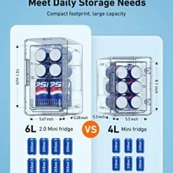 - Suitable capacity: Its upgraded interior readily stores up to 8*355ml cans or 4*20oz bottles of water. The detachable shelf lets you easily store beverages, cosmetics, and foods at varying heights.