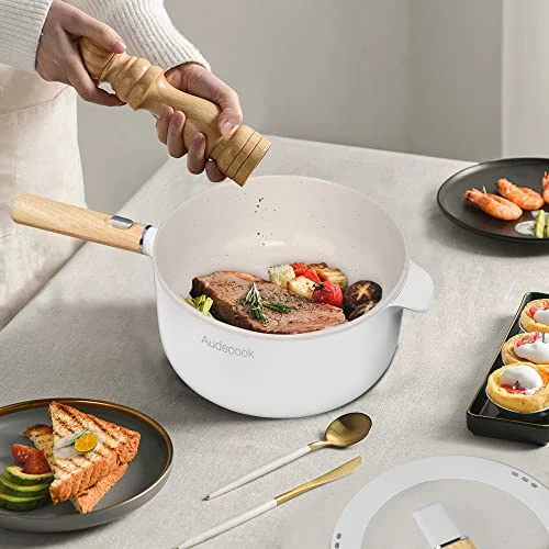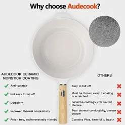 - HEALTHY CERAMIC NONSTICK – The surface of Audecook electric frying pan with lid is made of ceramic non-stick coating, PFOA free. This allows the ceramic frying pan to cook with less oil, food does not stick and slides off the surface easily for optimal cooking results. Also, cleaning will be an easy task for you, you only need to wipe the electric pan with a rag or rinse off the stains with water (be careful not to wet the bottom or the power cord connector), which is really convenient and fast.
