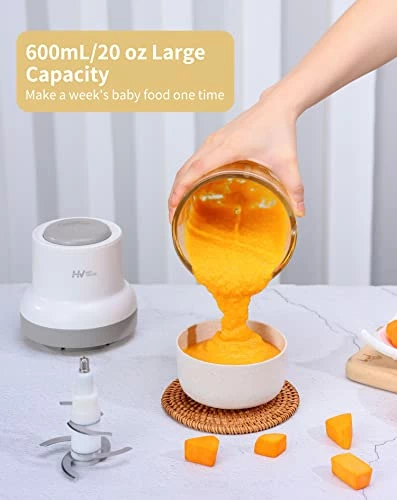 - ✔️【Multiple Homemade Food】 The baby food grinder can easily chop a variety of vegetables, meats and fruits, 600ml large capacity can meet most of your baby needs.