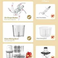 - ✔️【Efficient Production of Puree】The baby food processor is equipped with six sharp 304 stainless steel blades and a high-power, which make puree in seconds. Just press one button and you can make complementary foods of different consistency for your baby.