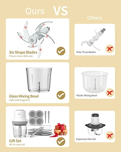 - Special Feature: ①13-in-1 baby food maker set ②Baby best gift set ③6 ”S” shaped stainless steel blades ④600ml large glass mixing bowl ⑤Food-grade materials ⑥Super motor power ⑦Easy to clean ⑧Easy to use ⑨Multiple uses ⑩Child safety lock design See more