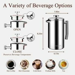 - Double Wall Construction โ Keep your coffee hot inside the pot far longer than other glass presses with our double wall stainless steel construction. Even after pressing, the handle and lid stay cool to the touch, so you will never burn yourself! Easily enjoy a perfect cup of coffee, have a conversation with your soul, and relax yourself for a quiet moment away from your stress.