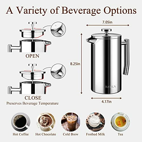 - Why purchase this product? โ The affordable price, user-friendly functions and elegant design makes this French Press a great addition to your kitchen. In addition, Our French Press is a great gift for friends and family. Purchase one today and enjoy the benefits of owning a BAYKA French Press.