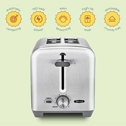 - 2 SLICE TOASTER: This toaster’s 750 Watt heating system provides quick, customizable results! 6-setting shade control with Reheat function for precise browning. Its elegant and durable brushed stainless-steel finishing is sure to brighten up any kitchen!