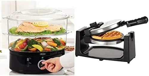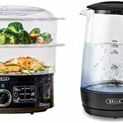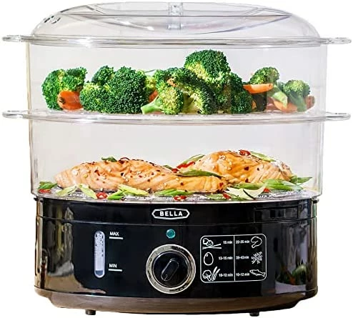 I bought this steamer to replace my old Black & Decker unit. The good: great unit for steaming and versatile with two levels of potential cooking. Also, either tray will fit the base if you want to balance usage (I mostly use 1 at a time). The lid fits both chambers. The bad, or could be better: the rotary dial has a chrome ring with the cooking time numbers that is VERY difficult to read. I have a well lit kitchen but have to shine a flashlight on the dial to see numbers. If Bella folks are listening a ring with darker min markers would be a great decision. Also, the manual list suggested cook times and I saw a comment someone made over cooking rice. It cooks the rice fine but the number of minutes listed is too low (2 cups need about 50 minutes, not half that time). Same for pole beans. If your using this add a few more minutes than what’s listed. Overall a good product that’s reasonably priced.