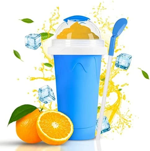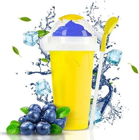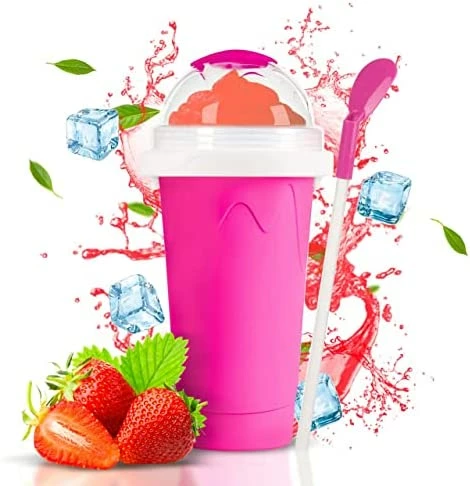 - ? SUMMER QUICK ICE MAKER: Built in freezing liquid inside the slushie cup & their ingredients are exchanged for heat and cold to make it delicious & funny. Freezing liquid turn any drink into a smoothie cup and squeeze it to enjoy your favorite slush (Milk shakes, cola, soda and juices) within minutes.