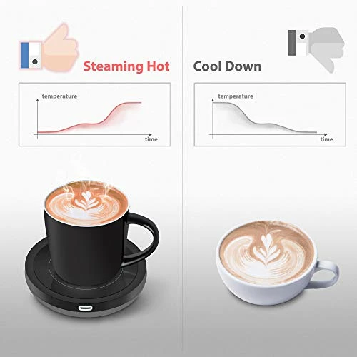 I have had a couple of other mug warmers previously, and they were useless. This one actually keeps your hot beverage very hot, for as long as you want it to. It’s also a nice looking design, blends in well with any decor, and is easy to use. I would suggest that when you first switch it on and place a mug of a warm beverage on it, that you put it on the hot setting for two or three minutes, and then switch it to the warm setting. No need to keep it on “hot”. The only drawbacks I found are: 1) the electrical cord is rather short, so I simply added a short, 8″ extension cord to it; 2) there is a USB port in one side of the device, for plugging in whatever. This should be a nice convenience, but the port is actually not compatible with any normal USB cord, so it’s useless. However, overall, I am very pleased with this device, and I think the price is reasonable.