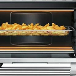 I got this Smart Oven Air Fryer Pro BOV900 to replace a 4 year old BOV845 whose convection fan had stopped functioning. I chose this one because I bake often and wanted a taller oven interior to accommodate a proper loaf. The photo is a banana bread in a standard 5×9 pan, showing ample clearance in this oven. The convection function seems more effective in the new unit, cooking 25 degrees F lower and faster than recipes call for. Always start checking 10 minutes or so before recipe time. All this said, I MIGHT dehydrate but will not air fry in this appliance. I feel this is what gunked up my previous oven’s convection fan, causing it to fail. There is no way to dismantle and clean this part. If someone primarily wants an air fryer, suggest just getting a dedicated and inexpensive unit, and expect it not to last long due to airborne oils inherent to the process. If you want a fully functional oven to cook for a small family without heating up the big oven/whole house, this is an awesome choice. Was also considering a Wolf Countertop oven for about twice the price but could not find any information on internal height. Decided to try one I was certain was larger inside than what I used to have. Another pro over the old one, BOV900 seems much quieter when running on convection bake. Have had for about a day and have already baked a yeast bread and the banana quick bread shown. This oven is great for baking. Next project will be a Bundt cake using lemons off my tree! So far loving this new countertop oven and Amazon beat the kitchen stores by about $50, with much faster delivery.