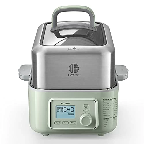 8 reviews for Cheapest π BUYDEEM G563 5-Quart Electric Food Steamer For Cooking, One Touch Vegetable Steamer, Digital Multifunctional Steamer, Quick Steam In 60s, Stainless Steel Steamer Tray & Glass Lid, Cozy Greenish, 1500W β