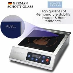 - β γDesign for Commercial-GradeγLarge German Schott glass surface. Full 18/10 Stainless Steel Construction makes it more reliable and durable. Key-Press-Control can make you control more easily even though you’re wearing gloves or your hands are wet. With no open flame or heating element, food does not burn-on the glass cooktop, so it’s easy to clean.