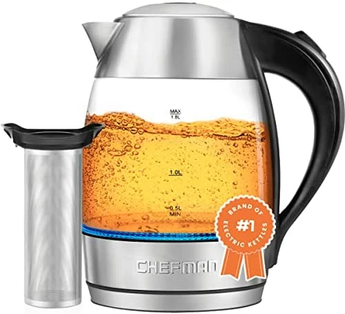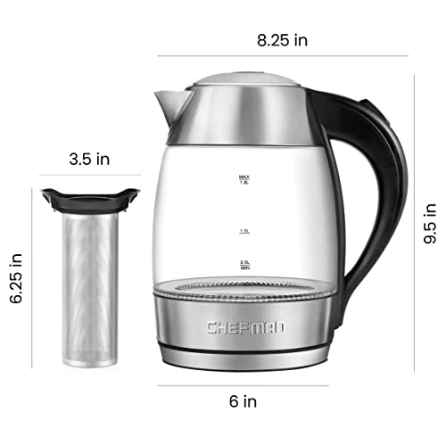 - SAFETY FEATURES: CETL approved with advanced safety features including a stay-cool handle, auto-shutoff, and boil-dry protection ensure safety and peace of mind. BPA-free with certified safety approval. 1-YEAR WARRANTY: A one-year warranty provided by Chefman means you can purchase worry-free. 1500 watts/120 volts. – RJ-11-17-STI-OT