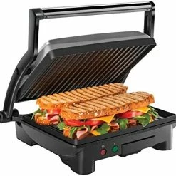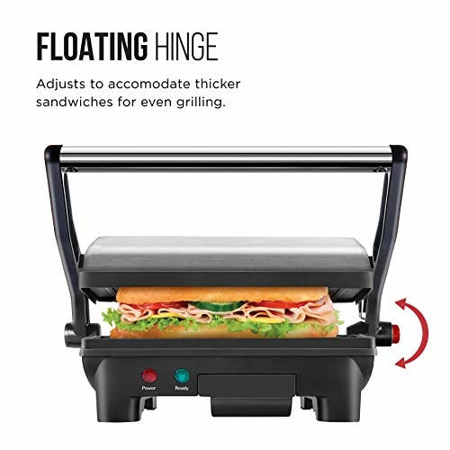 - ADJUSTABLE FOR ANY OCCASION: Floating hinge adjusts to accommodate any size sandwich β thick or thin. Closed cooking surface of 5.5” x 8.75” is ideal for two sandwiches, while lay-flat surface of 10” x 8.75” can accommodate a variety of food. Great for a quick meal, summer party or a family event.