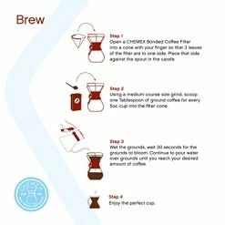 When I read the reviews of this product, I was a little skeptical. I started drinking coffee, maybe ten years ago. After the usual drip machine, I went to a French press. Then I went to Aeropress (which is a good method but it is too expensive because it uses too much coffee). Finally, my old Cuisinart machine died, and I went looking for a replacement. I was looking for the ultimate machine that would get 5 stars; there isn’t such a machine. The highest I found was the Chemex, which got 4 and a half stars(plus). I became intrigued, read ALL the reviews and went on to Utube to see how you are supposed to use this method. It’s pretty simple; you heat up water to 200 or so degrees (I have a Cusinart electric pot I bought for tea which has a 200 degree setting), fold one of the special heavy duty chemex filters (and yes, use them, they really are better; that’s half the reason this system works so well); others suggest you wet the filter; I agree, it seems to make things flow a little better) and put it in the top opening of the glass container. You put your coffee in (a tablespoon for each 5 oz is their recommendation), and put a slight indentation with your finger or something in the center of the coffee. You then pour just a little liquid in the center, then around the edges, gradually filling the cone with water (and raising the coffee off the cone). Gradually (don’t just dump it in really quickly) pour all the water into the cone filter. It takes a minute or two for the water to drain down, but when it does, you have the best coffee you can possibly make. Of course, the quality of coffee is dependent on two other factors, one, a clean excellent water source, and two, FRESH (burr ground beans within a day or less for maximum taste) high quality coffee. This is not a machine per se, it is a method that has been tested for a bunch of years, and it really works. The downside is if you are in a hurry or you simply don’t have time in the morning, this will not work for you as you have to have a few minutes and, most important, some patience. I have written over 350 reviews on products for Amazon, and this is, by far, my most enthusiastic euphoria with a product. It’s like I found the magic bottle (glass), and it has fulfilled my wish (perfect coffee). You know, I’ve said so much (and so little when you analyze it), so here are a few final comments about the coffee produced. First, it is really smooth; it is absolutely NOT bitter at all, and it just looks clear and clean in a brown way. It’s so good that my wife (I made her try it) who doesn’t drink coffee even admitted it was very good (which coming from her is like a miracle). Clean up is very easy (other reviewers said this too); you just throw away the coffee in the paper filter and rinse the container out. I always rinse it right away, if you let it sit, you may have some problems cleaning it. The collar, two pieces of wood fitted around the neck of the glass, is held on by a rawhide cord; you can easily take this off (but why, if you just rinse out the unit each time, it is superfluous to mess with the collar). One more little trick I thought of (all by myself) is I heat the cup I am going to pour my coffee into with hot water prior to my putting the finished coffee into it. (And if I am putting in milk, I heat the milk to get it warm). This allows the coffee to be warm longer as when it comes out of the container as it isn’t that hot (you can reheat it with a microwave, but I sometimes wonder if that does affect the taste). Oh, one more little thing, it says 6 cup, they are assuming a cup is 5 ounces, to me a cup is 8 ounces, so if you need a larger than say, 4 cups, go with a bigger size. Any comments are appreciated! Postscript: I also now use a double walled glass to put the prepared coffee in (16 ounce) as it keeps the coffee hot much longer (like up to 25 minutes, depending on how hot the coffee is to start). I also put dried egg shells in my filter before I put in the coffee; the egg shells help make the coffee even milder (if that is possible) and add a little calcium to the coffee, or so I have read. I take this all very seriously.