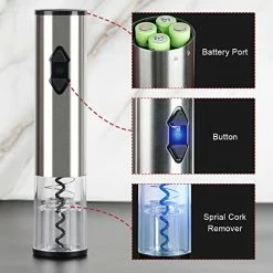 - {Cordless Design}โ You don’t have to worry about the cable or USB charger would be in disorder on your table. CIRCLE JOY wine opener is Cord-free designed. It able to uncork up to 100 bottles with 4 PCS AA full power batteries (batteries NOT included in the box)