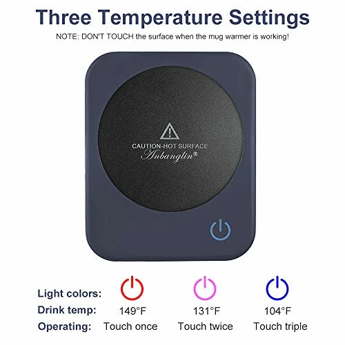 - ☕【3 Temperature Settings & Easy to Use】 20 watt mug warmer for coffee, tea, milk, hot cocoa or your candle wax. You can warm or keep your coffee up to 104℉-131℉-149℉ (40℃-55℃-65℃). Just need to soft touch the button. NOTE: It does not support to boil liquids.