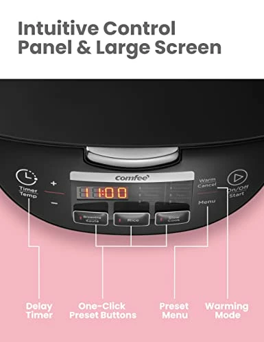 - High Safety – COMFEE’ electric multi rice cooker operating under the normal pressure with power, it is considered a safe alternative of all kinds pressure cooker or cooking on the stove. The cool touch handle ensures your safety when you open the cooker.