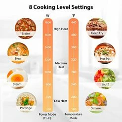 - MULTI-FUNCTIONAL INDUCTION COOKTOP – 8 Power & Temperature mode from 300W to 1800W & 160 to 440℉ can meet your various cooking needs: boil, simmer, steam, stew, sauté, slow cook and fry with ease. Built-in digital timer shuts off automatically.