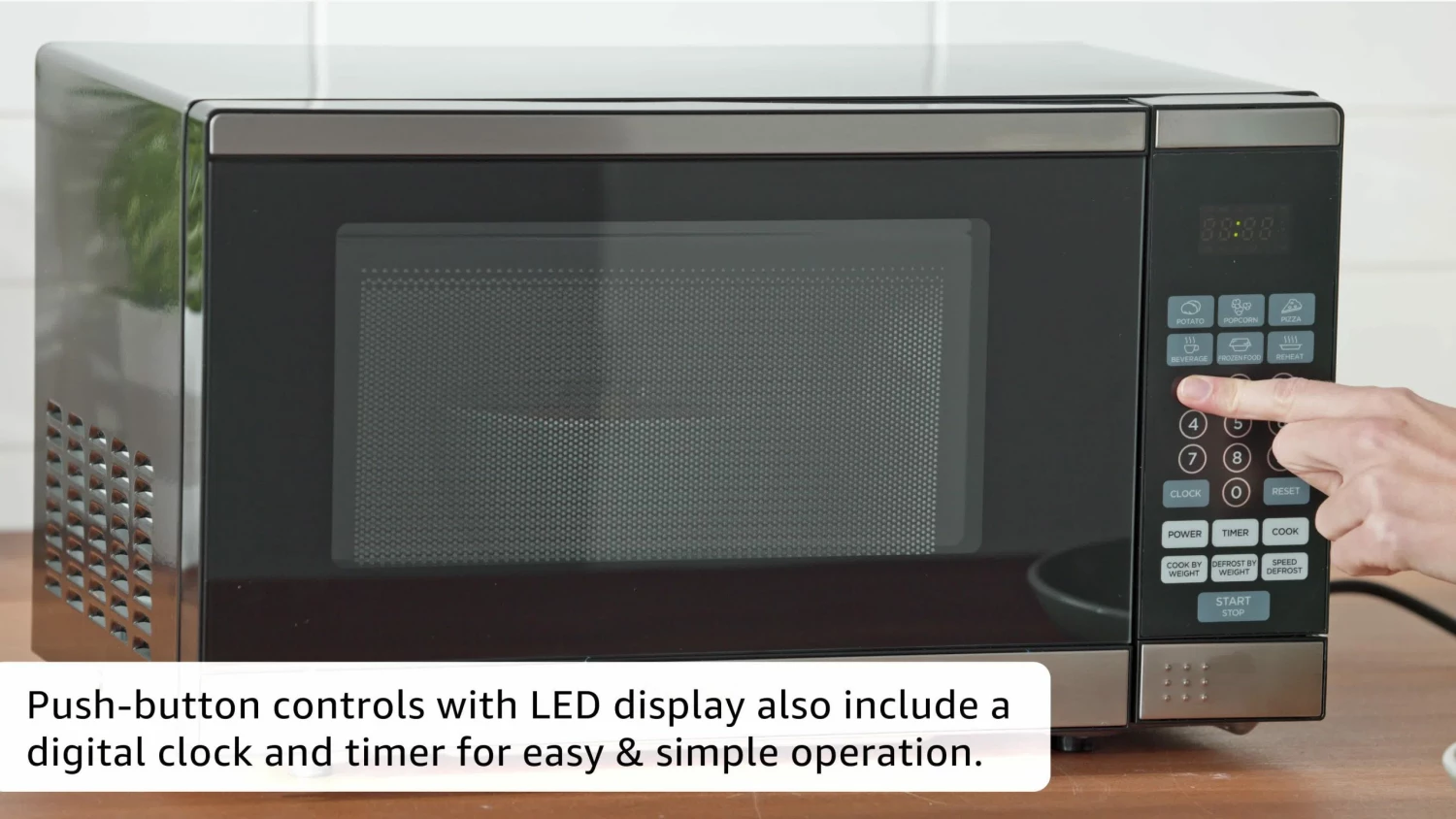 - 6 convenient quick cook settings include popcorn, baked potato, pizza, Beverage, reheat and frozen dinner