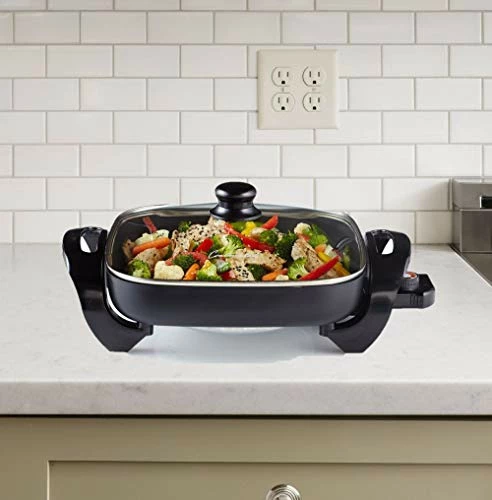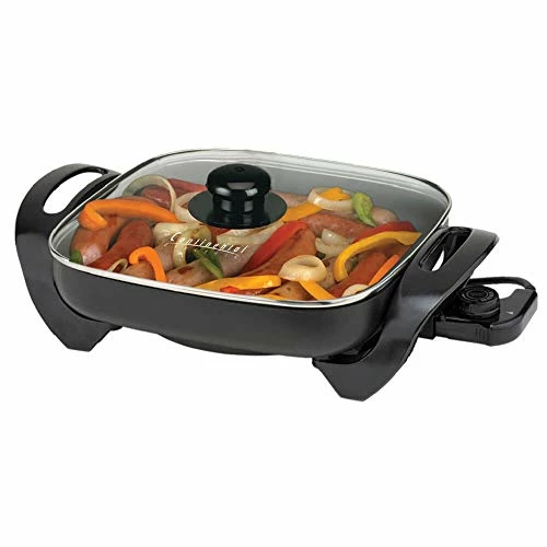 - Deluxe 12″” Large electric skillet surface for cooking and serving as a warm buffet tray