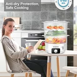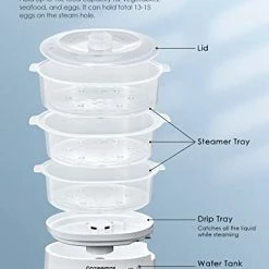 - 【Fast Cooking & Unique Steam Design】13.7QT large capacity food steamer with unique steam accelerator,it can rapidly produce steam in only 25S. With 800W turbo steam cycle and unique steam hole design, it also can vapor permeation more better and heated evenly, you can cook food on multiple levels all at once, saving you time energy and money.