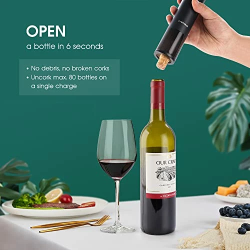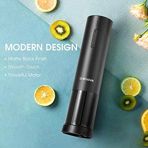 - 【Simple & Fast Operation】The Crenova Electric Wine Opener helping you effortlessly extract a cork in 6s by pressing the “Down” and “Up” button.