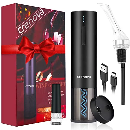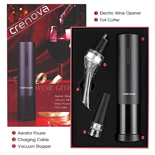The media could not be loaded. I’d received my Crenova Wine Kit today. i’d been looking for a set that included an electric opener and aerator. This kit comes with those as well as a vacuum stopper and a foil cutter. The set comes in a nice box that would be suitable as a gift. It includes instructions in clear English, though most of the components are self-explanatory. The electric opener has a micro-USB cable for charging. It arrived with almost a full charge but I left it for an hour to fully charge.I had a bottle of Tuscan red wine that I wanted to try so this was a good time to see how the wine set performed. Removal of the top of the foil capsule was a cinch. The corkscrew easily removed the cork. The bottle I opened was a 2016 so the cork was quite firm. Ejection of the cork was easily accomplished by pressing the top half of the rocker switch. I haven’t tried it on a denser synthetic cork but judging by the power of the motor, I suspect it won’t have a problem.The aerator worked very well. You can see the aeration process from the side and it’s quite vigorous. On those rare occasions when a bottle needs to be sealed for another day, I’ve been using a vacuvin system. The Crenova kit comes with a stopper that has a built in manual vacuum pump on it. This was the only flaw in the system. The pump works and the stopper seems to hold a decent vacuum for the short term, but by the next morning the stopper had leaked and there was no longer any vacuum. I seated the stopper quite firmly so suspect it’s leaking through the vacuum pump assembly. It could be that my kit came with a faulty pump/stopper.Overall, I like this kit so far. I had another more expensive electric corkscrew and it died quite quickly and was more expensive without the accessories that the Crenova kit comes with. It needs a better vacuum stopper to ensure that wines don’t oxidize while stored for a day or so.