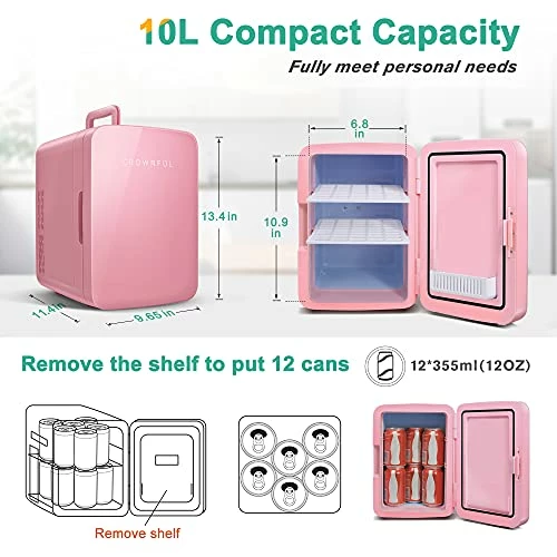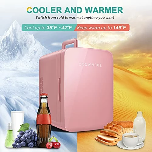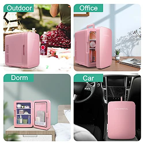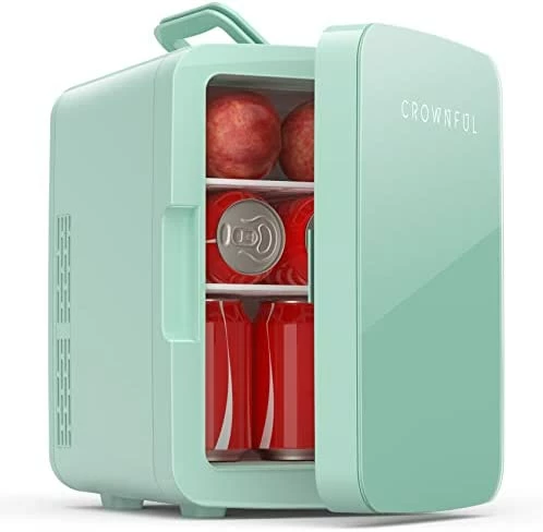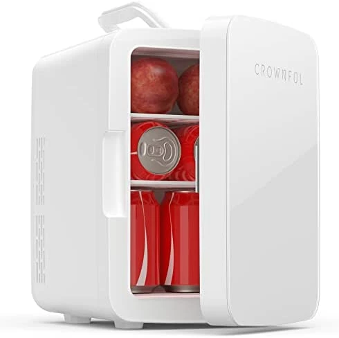 - PORTABLE MINI FRIDGE: The CROWNFUL Mini Fridge is a small freezer to store foods, drinks, beer, snacks, breast milk, makeup and skincare. Great for bedroom, office, dorm, road trip, boating, camping and more. This is a multifunctional fridge you didn’t know you need.