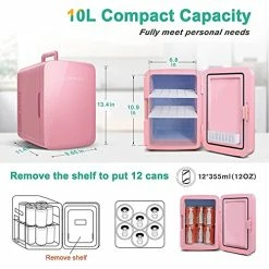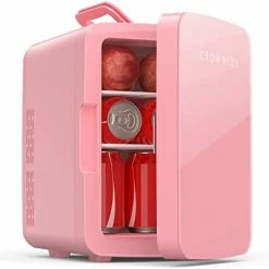 To start off, the fridge is super cute and a perfect size for all my needs! This can fit my lunch Tupperware, a full sized creamer, and it has storage in the door. The color is so cute and it does not make a sound! I seriously forget it is there and I can leave it on my desk at the office without anyone noticing it is there. The only downside which really sucks is that it does not get that cold! Cold enough just to keep the items from perishing, but not enough to keep anything ice cold ? it’s a solid option for the money though and it would be perfect for use as a skincare fridge.