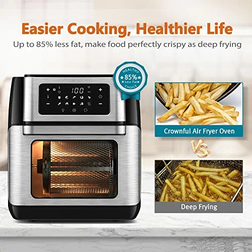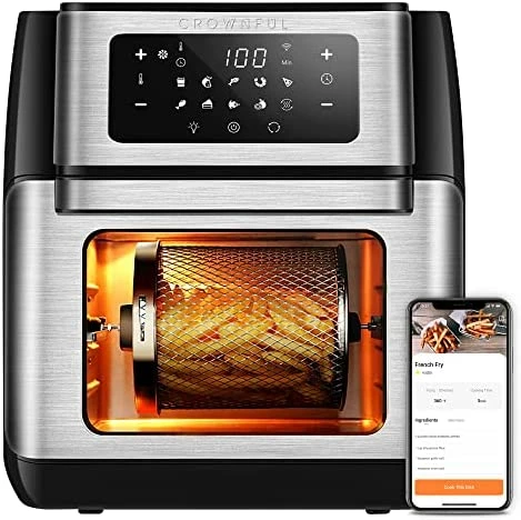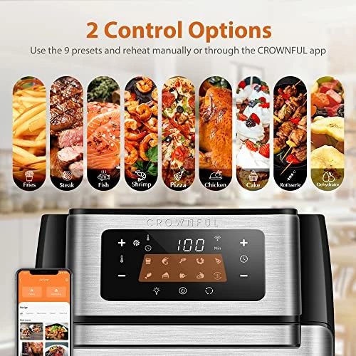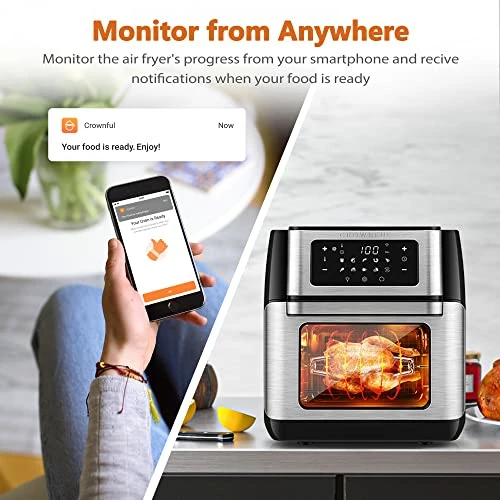 - ? [Smart Control Air Fryer] The CROWNFUL App lets you control the air fryer, change the time and temperature, read in-app recipes, and keep an eye on the cooking process. The air fryer can also be managed by Google Assistant or Amazon Alexa. To access the choices for remote control on your smartphone, you can download the CROWNFUL app.