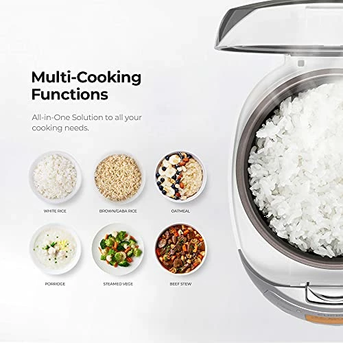 - MULTI-FUNCTIONAL: Features 9 menu options such as white rice, GABA rice, multrigrain/brown rice, porridge, slow cook, reheat, and more amongst a multi-cook function that cooks every grain from quinoa to oatmeal