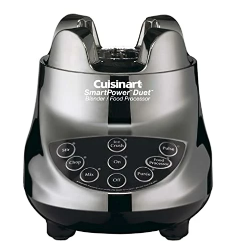 Cuisinart powerful new 7-Speed blender also has a genuine Cuisinart food Processor. A heavy-duty 500-watt motor pulses, stirs, mixes, purees, chops and even crushes ice in record time. In food Processor mode, users can slice, shred or process ingredients right into a 3-Cup work bowl. It’s big, it’s powerful and it’s easy – removable parts are dishwasher-safe! Features: Full-power 500-watt motor with overload protection|Die-cast metal housing|48-ounce glass blender jar with premium ultra-sharp stainless steel blade assembly|3 cup food processor attachment with feed tube and pusher slicing/shredding disc and stainless steel chopping blade|7-speed electronic touchpad controls with LED indicators|Removable 2-ounce measuring cap on blender jar lid|Recipe book|Limited 3-year warranty|BPA free