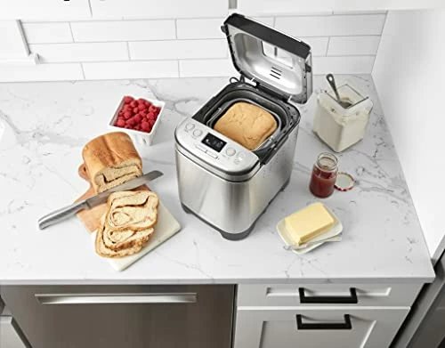 - Vertical baking pan for counter-friendly compact design – removable kneading paddle and bread pan