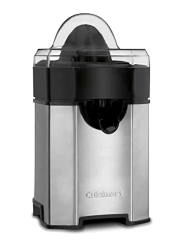 Before I actually saw a citrus juicer in action on TV, I always thought that they were for lazy people who didn’t want to juice their own lemons. I was wrong. I bought this juicer after watching the Barefoot Contessa on the Food Network use it in almost every episode, and now I know why. Let me just lay out the benefits of using an electric citrus juicer as opposed to using a wooden reamer. First of all, if you need to measure out a precise amount of citrus juice for a recipe, it is much easier to put a measuring cup under the plastic snap-up spout of the electric juicer rather than trying to aim into the measuring cup using a wooden reamer. Second, electric juicers get so much more juice out of citrus fruits than a regular lemon squeezer. The Cuisinart citrus juicer automatically switches the direction of the reamer to get the most out of the citrus. Another benefit of electric juicers is the fact that when you are using an electric juicer citrus juice won’t squirt into your eyes as does a manual juicer. Also, the Cuisinart features a unique “Final-Spin” feature similar to that in a clothes washing machine. How the final-spin feature works is that once you take the empty citrus off of the reamer, you press the clear plastic lid down onto the juicer which makes the reamer spin really fast and uses centrifugal force to squeeze all the juice out of the remaining pulp. You just can’t do that with a wooden reamer. Another benefit of the Cuisinart juicer is that it filters out the pulp. Most if not all electric citrus juicers have this feature, however, most manual juicers don’t. Also, with the Cuisinart, every removable part is dishwasher safe which is very convenient for cleaning. I mentioned the snap-up spout earlier in this review but I didn’t explain what it was. Basically, the snap-up spout stops the juice from getting on your countertop which is especially useful if you don’t want lemon juice all over your counters. The Cuisinart juicer features a stainless steel body which looks very nice and will definitely last a long time. A lot of electric juicers’ motors are very loud, but that isn’t the case with the Cuisinart. The Cuisinart isn’t that loud and won’t interrupt normal conversations. Overall, electric citrus juicers offer many benefits over manual juicers, and if you are willing to purchase one I would fully recommend the Cuisinart for it’s final spin feature and it’s stainless steel body.Pros:- Unique “final-spin” feature- Stainless steel body- Snap-up spout- Quieter than most electric citrus juicers- Pulp-controlCons:- NoneIf you found this review helpful I would appreciate it if you clicked the “helpful” button below this review. Thanks!