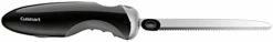 What I was really looking for was a battery powered knife. But, the few available have terrible ratings so I wound up purchasing this corded knife. I wanted to replace a corded Hamilton Beach model that we’ve had for a number of years. As some have noted, in many homes these knives come out only on holidays to carve the meat. This was true for us, but, we have recently gotten interested in bread making, albeit, cheating by using a bread machine. The hardest thing about making your own bread is slicing it (I guess that’s why someone invented “sliced” bread). If you try to use a standard bread knife, you have to hold the loaf so tightly that you “crush” it. What you end up with is a slice shaped like an hourglass and about 5 inches tall by 1 inch wide. An electric knife solves this problem although it takes some practice to cut a “straight” slice. The Hamiton Beach machine did okay but it seemed to be slower than it should have been so I started thinking that it might be dull. Looking at the many corded knives on Amazon, there didn’t seem to be any that were that highly rated. The prices for most knives were in the $25 range, about half of the price of this knife. I reflected on problems I had with the Hamilton Beach. The biggest problem is that if you want to use if daily, you have to leave it on the kitchen counter. The knife with the blade installed takes up a lot of room since it has to “lie” down. It’s too much work to remove the blade, unplug it, and store it in a cabinet. This Cuisinart solves that problem by allowing you to store the unit vertically. It’s pretty easy to remove the blade and return the blade and knife back to the storage block. But, one of its most important features is that it looks really cool on my countertop. Even if it fails, I will keep it there just to impress my friends when they come over. The unit also has a more flexible cord than the Hamilton Beach. The Hamilton Beach cord had a mind of its own and would always seem to jump in front of the blade just as I was ready to cut something. The Cuisinart seems to cut at about the same speed as the Hamilton Beach so I don’t think that the Hamilton Beach knife was actually dull. If I could add anything to the Cuisinart, I would add MORE blades. This would make the knife even cooler! There should be an EPEE sword blade (I was on the fencing team in college), a pruning blade for working in the garden, and perhaps even a small steak knife blade for cutting those cheap cuts of meat that we have to buy because meat has become so expensive. Summing up, I haven’t used this knife very long, I’ve not yet used it to cut meat, and I know that it has been poorly reviewed by some. But, if you’re go to pay $25 for an electric knife and take your chances, why not pop another $25 and get something really cool!